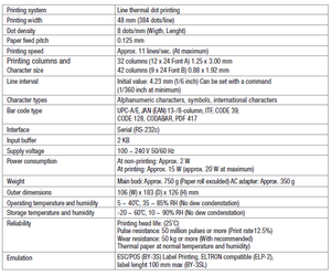 The BAYKON BY3S is a thermal label printer designed to print small-sized labels and graphics on thermal paper. The information is arranged in a template form, which can be partially modified under customer demand. The printer supports a PCX format and has 4 in-built matrix fonts with different sizes. The device prints barcodes.