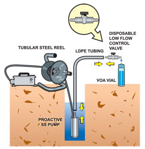 Enviro-Equipment rents the Proactive Stainless Steel Mega-Typhoon Pump used for purging, sampling, and low flow sampling of groundwater. Proactive Environmental Products is proud to engineer the 12-volt Stainless Steel Mega-Typhoon Pump and Low Flow with Power Booster I LCD Controller for low flow purging and sampling of groundwater monitoring wells. The ruggedly constructed, yet compact, all Stainless Steel Mega-Typhoon is capable of pumping from a depth of 80 feet.