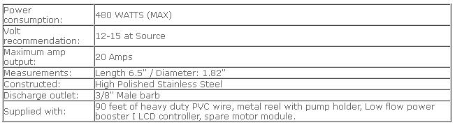 The Low Flow with Power Booster I LCD Controller is specifically engineered for use with the Stainless Steel Mega-Typhoon. The heavy-duty NEMA 4 enclosure incorporates a 30-amp reverse polarity protection circuit, current limitation circuitry, and thermal overload protection. The controller`s Constant Voltage Regulation (CVR) Technology boosts the 12-volt power supply to 19 volts; supplying the Stainless Steel Mega-Typhoon with a constant 14 volts. This technology provides for the pump`s high performance. The digital controller display allows you to fine tune the pump flow rate to as low as 10 ml per minute at any depth.