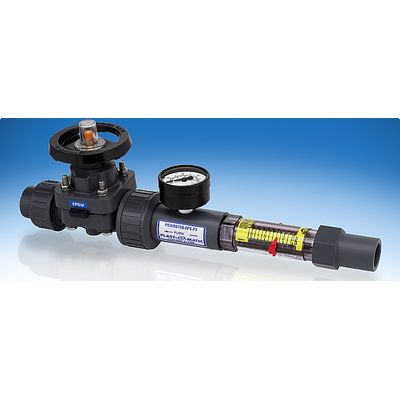- Diaphragm Valve, Inline Flowmeter and Pressure Gauge.