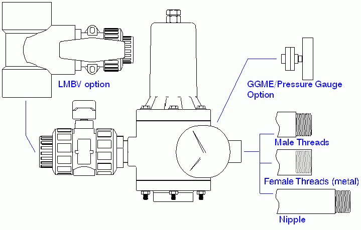 - Ball Valve, Pressure Regulator and Pressure/Temperature Combination Gauge plus nipple connection.