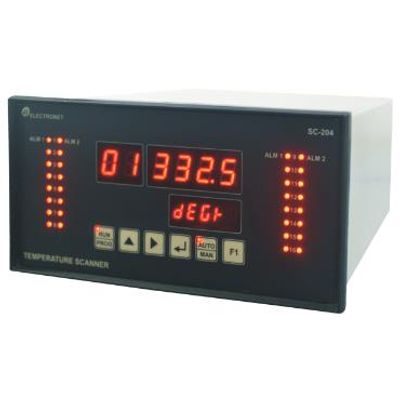 Electronet series SC-204 is unique micro-controller based 8 /16 channel dedicated/universal input process scanner. It is in most miniature size with multiple features. SC-204 can accept the input like RTD, Thermocouple, mA, Voltage, mV and display its processed value with optional alarm settings and communication port. All operating parameters are programmable through front membrane keypad. Individual LED display available for channel number, process value and engineering unit.