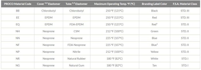 - All elastomers above are not intended for steam service.