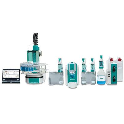Automated analysis system for high-performance, flexible determination of organic additives in electroplating baths using "Cyclic Voltammetric Stripping" (CVS), "Cyclic Pulse Voltammetric Stripping" (CPVS) and chronopotentiometry (CP). Comprising 894 Professional CVS, 858 Professional Sample Processor, four 800 Dosinos, 843 Pump Station, measuring head for rotating disk electrodes and extensive accessories. For sample series of up to 56 samples. The viva software is required for control, data recording and evaluation. PC, electrode set and viva license are to be ordered separately.