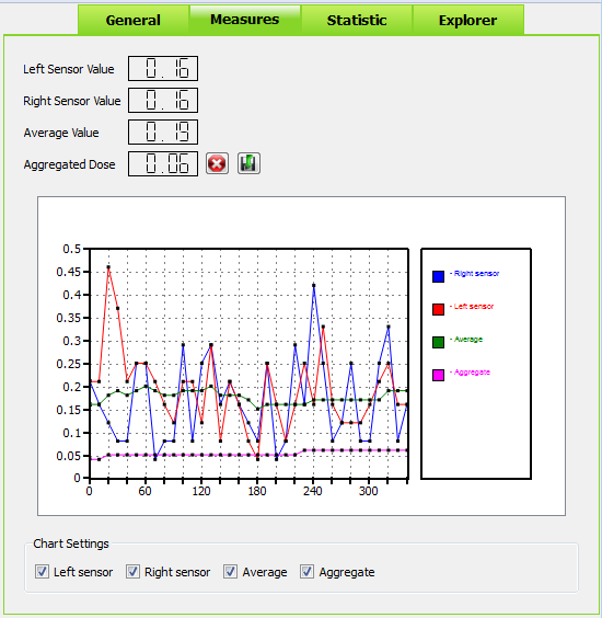 Measurements made with the device display exact background radiation levels in μSv/h along with a message describing the level of background radiation: