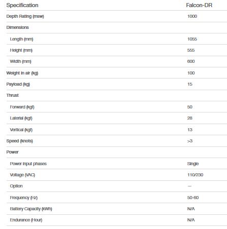 The Falcon concept is the most successful underwater electric robotic system of its class and is proven in numerous intricate and demanding missions across many commercial, security and scientific sectors. Equipped with Saab Seaeye`s advanced iCON™ intelligent control system the Falcon-DR provides exceptional vehicle control and diagnostic data as well as the ability to customise the pilot display and enable features such as station keeping. The Falcon-DR is lightweight, sized just over one metre long and is rated to a depth of 1000m.