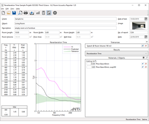 - Reverberation Time 1/3-octave band: 50 Hz - 10 kHz