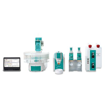 Automated analysis system for high-performance, flexible trace determinations with voltammetry and polarography with the Multi-Mode Electrode pro or the scTRACE Gold. Comprising 884 Professional VA for MME, 919 IC Autosampler plus for VA, two 800 Dosinos, 843 Pump Station, measuring head for rotating disk electrodes, and extensive accessories. For sample series of up to 28 samples.