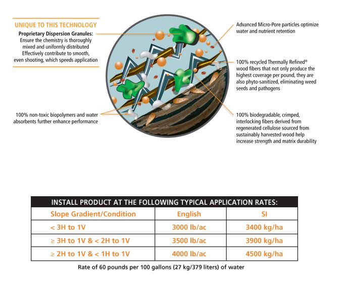 - Class-leading erosion control effectiveness; meets or exceeds all industry testing standards for BFM/SMM products