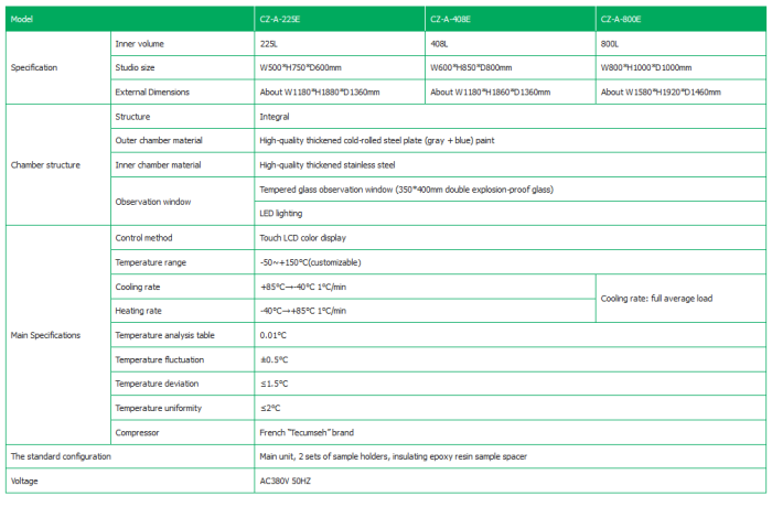- The compressor circulation system adopts the French “Taikang” brand, which can effectively remove the lubricating oil between the condenser tube and the capillary tube, and the whole series adopts environmentally friendly refrigerants (R23, R404, R507);