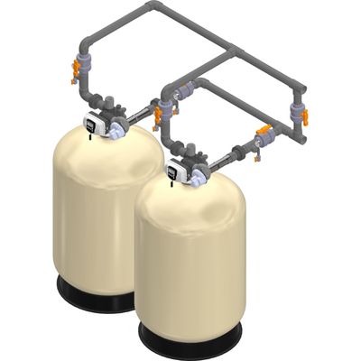 Excalibur Water Systems’ Progressive Flow Chemical Removal Filtration Systems utilize motorized no hard water bypass valves (NHWB) on the outlet of each standard filtered control valve, opening or closing water flow based on flow rate demand. The valves allow multiple control valves to always become a multi-tank progressive flow system with one unit online and the remaining unit(s) in stand-by or regeneration.