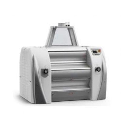 The grain enters the roller mill through the product inlet hopper, from which it is transported to feed rollers and then on the milling rollers. The capacitive level sensors or load cells are set the amount of grain that is loaded into the product inlet hopper. The pneumatic system is used for automatic connection / disconnection of milling rollers and for adjustment milling distance by means of a stepped handwheel. These fine tuning wheels can reproduce using an electrical system with a stepper motor or servomotor. WITH A specialized system of air ducts ensures an even flow of grain between the rollers.