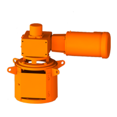 Rugged cast iron housing resists shock loads, maintains accurate gear alignment. Quiet gearing runs at less than 85 dba. Hollow quill design for easy installation of shaft and precise alignment. Heavy duty output shaft bearings with L-10 lives in excess of 70,000 hours. Dry-well dam around the output shaft provides a positive barrier against oil leakage. NEMA C-face motors flexibly coupled to gearbox.