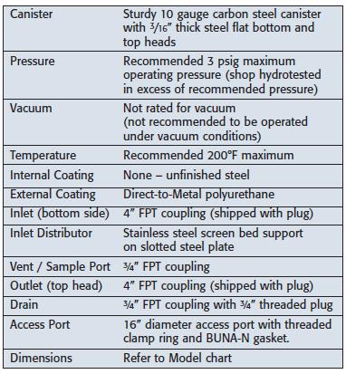 - Top 16 inch diameter access port for activated carbon media fill and removal