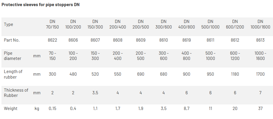 Vapo - Model DN -Protective Sleeves for Pipe Stoppers