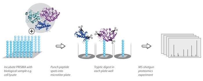 - Proteins interacting with the peptide matrix are then identified and quantified by mass spectrometry
