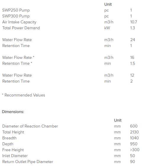 Skimz ST600 Commercial Protein Skimmer is fitted with 1 x SWP250 and 1 x SWP300 pumps, drawing 10,700 litres per hour of air. Suitable for treating water volume up to 24,000 litres.