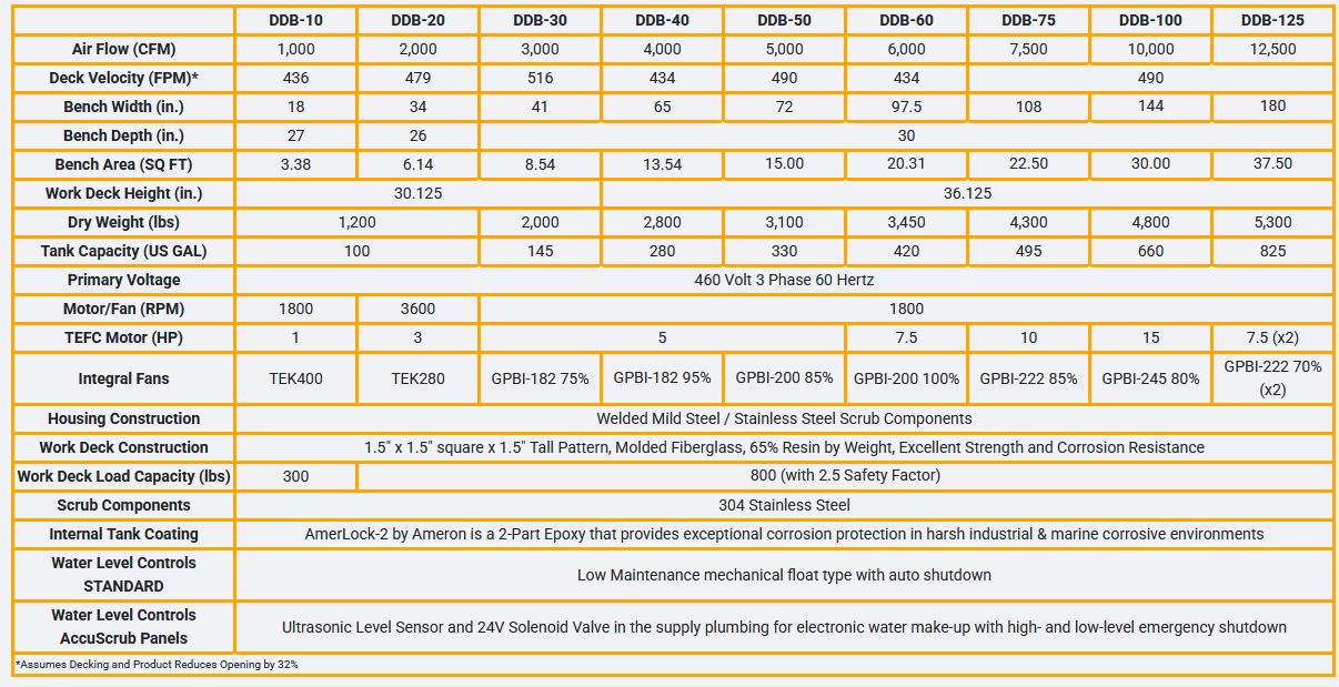 The most efficient wet downdraft benches on the market, the Uni-Wash series of wet downdraft tables are capable of collecting dust down to 3 micron in size utilizing only 3″ wg. Wet type dust collection is required for the safe collection of combustible metal dust. Wet Type Dust Collection has also been used effectively in many other difficult applications in place of cartridge collectors. Our unique scrub design has been an industry standard for over 50 years and continues to lead the industry in Wet Type Dust Collection efficiency.