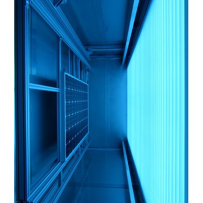 During the test, the module temperature is kept constant at 60°C in a special temperature chamber. We deliver our UV preconditioning chamber turnkey including the data acquisition unit, radiation and temperature sensors.