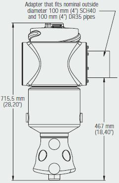 - PVC adapter that fits 100 mm (4`) ø DR35 and 100 mm (4`) ø SCH40 pipes