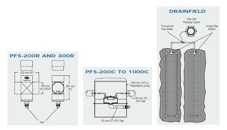 Premier Tech Environment (PTE) has developed a complete One of decentralized wastewater treatment products and services. The PFS-200R and PFS-300R and PFS-200C to PFS-1OOOC PTE Flow Dividers can be used in any type of septic installation requiring distribution of wastewater (after a primary treat-ment). Note that PTE also offers a gravity flow divider for the installation of 2 Ecoflo® BiofiIters in the residential sector.