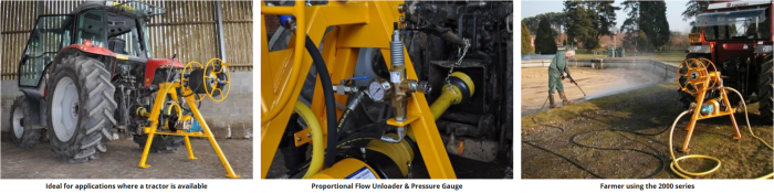 The COMMANDO 2000 Series PTO units offer a choice of three alternative pump models to suit individual requirements. Ideal for applications where a tractor is available. A high performance cleaner providing exceptional value for money.