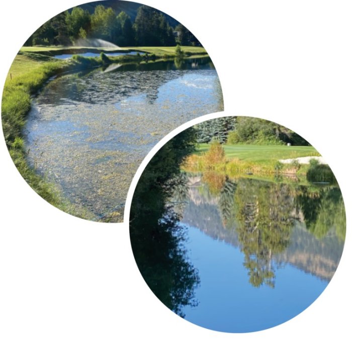 - Reduces golden, blue-green (cyanobacteria), and green algaes - linked to overall nutrient loading (beneficial bacteria is a power augmentor)