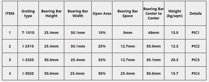 Thickness: 50.8mm. Open area: 33%. Weight: 20.30kg/sqm.