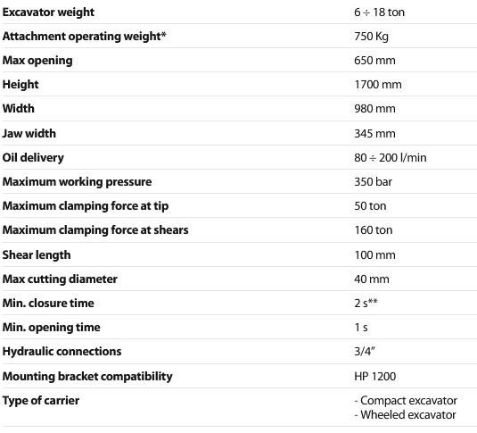 The unique shape of Indeco pulverizers is a design feature created specifically to reduce the variation in the force required between the start (maximum opening) and the finish (minimum opening) so as to increase efficiency and continuity, and to reduce both working times and stress transmitted to the excavator.