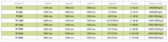 The turbine pulverizers TP, thanks to their blades and toothed armors, optimize the quality of the product to be separated and reduce the working time. The process of pulverization consists in a finer dry grinding of the pre-shredded product which comes out in small granules. The vertical structure of these pulverizers, made of hardox steel, and the blades in a special reinforced tungsten alloy, guarantee a long life span and the best performances all over the years.