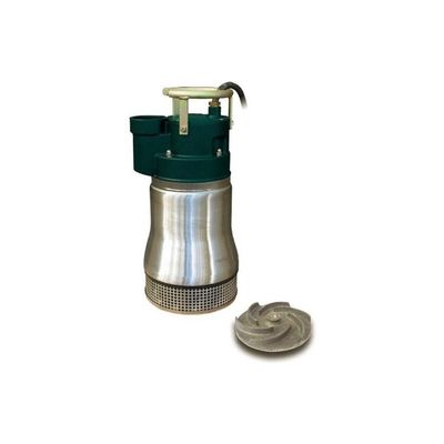 Submersible pumps with open multi-blade radial impeller in chrome cast iron, resistant to abrasion. Thanks to the stainless steel cooling jacket the pump can operate even with a minimal level. The diffuser is covered in rubber to resist abrasion. The suction filter allows the passage only of solids capable of passing through the impeller without closing the passage.