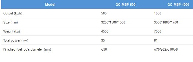 • Diameter of Briquettes:70mm, 30mm, 22mm, 10mm, 8mm