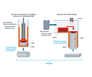 1. Uniform composition; 2. Consistent quality; 3. Availability of large-sized.Pure titanium ingots and alloy ingots are both found in titanium ingots, which are made by melting and casting mostly titanium sponge. Due to their uniform composition, consistent quality, and availability of large-sized ingots, large-sized pure titanium ingots, which are generated using electron beam melting, in particular, significantly contribute to advances in product quality and productivity.