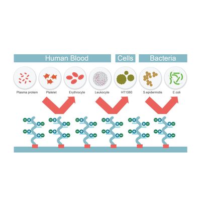 The P-Tex coating can be added into any desired material by soaked with a period of time. On the surface of the target material will compose a self-assembled zwitterionic chemical structure, endowing the material with aforementioned features.