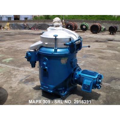 Alfa Laval MAPX 309 Purifier is a disk stack type centrifuge with a 15 HP motor for strong performance. Alfa Laval MAPX 309 Oil Separator features gravity discharge of both light and heavy liquid phases. It is mainly used for fuel oil, diesel, lube oil, bio-diesel and vegetable oil separations. We have following MAPX 309 & many other ALFA LAVAL, WESTFALIA, MITSUBISHI series in stock. We offer Fully Refurbished & New Separators also.