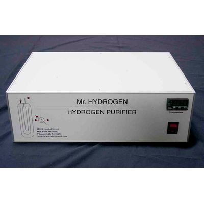 Mr. Hydrogen (TM) Purify commercial purity hydrogen, 99.5% pure, to 99.99999995%. Complete hydrogen purification system for laboratory or light production. The all-for-one purifier price equals the cost of the heater/controller box, price at right plus the price of the purifier cell below. Specify 115-230V operation includes a a fixed bleed regulator. The separated version requires its own temperature controller. For automatic safety shut off, add $1500.