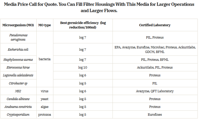 Water simply has to pass over the Quantum Disinfection™ media and the  microorganisms are instantly destroyed through the catalytic electron exchange.
