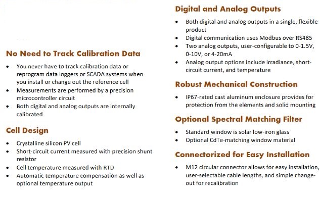 Designed for PV System Monitoring: Specifically designed for low-cost, high-accuracy solar irradiance measurements for outdoor monitoring of PV systems