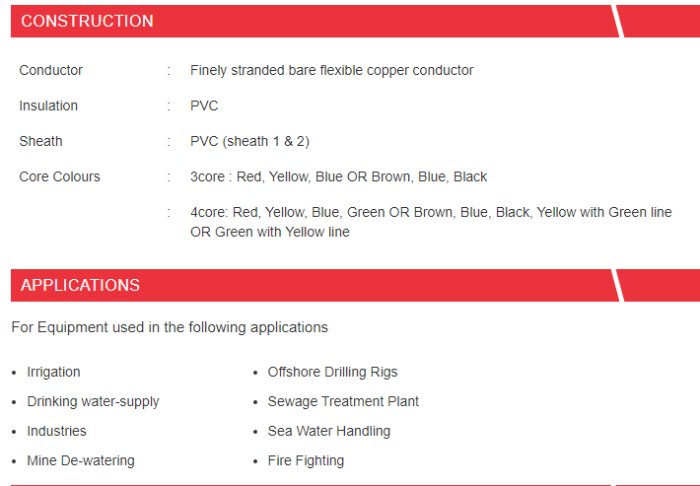 Excellent resistant to moisture, abrasion, greace.oil. Excellent mechanical & electrical properties. Generally Conforming to : CENELEC HD 21, IEC 60227, BS 6500, DIN VDE 0281, IS 694 Temperature range -15°C to +70°C