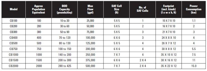 - Compact, efficient design, less than 1/4 that of a comparable suspended growth aeration tank