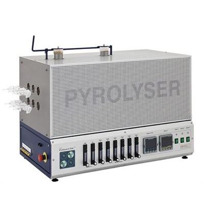 In addition to the standard Pyrolyser Trio, the Pyrolyser Mini system with very small foot print is availabe for specific applications, allowing for use in p.ex. fume hoods, for instance.