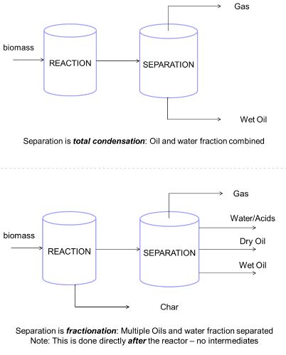 Our 2nd Generation Pyroflash reactor is based on its unique reactor design and patented separation process which distinguishes from previous generation pyrolysis technologies. This innovative separation process produces fractions directly from the feedstock and separates the water and acids fractions from the bio-crude oil produced through the thermochemical process that takes place inside the reactor with temperatures above 900 Celsius. As a result, multiple products simultaneously are extracted from the process.