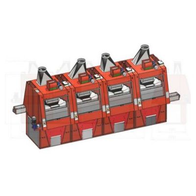 Under table fan motor power kW 4 x 4. Oscillator motor power kW 0.75 x 4. Tilt actuator motor power kW 0.18 x 4. Rotary valve motor power kW 0.75 x 4. Screw conveyor motor power kW 2,2 x 2. Driven by PLC / Inverter. Weight Kg. 6200.