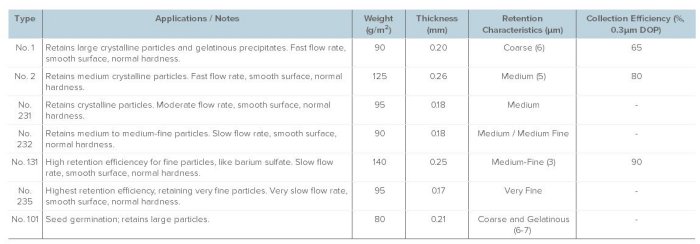 Qualitative cellulose filter paper from Advantec MFS for precipitate removal and qualitative analysis preparation. Made with 100% alpha cotton cellulose; ash content 0.1%. Stable from pH 0 - 12; temperature up to 120°C.