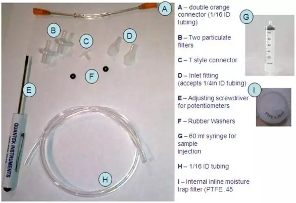 - B – Two particulate filters – These leur-fit filters can be attached to the inlet fitting of the analyzer to provide extra protection from particulates.