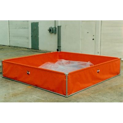 Standard tanks are manufactured two feet deep, with areas ranging from 5 feet x 5 feet to 20 feet x 20 feet, and utilize a 22 oz fabric. Capacity is dependent on size, and ranges from 300 to 5,000 gallons. Heavier weight fabrics are also available. Custom sized tanks can be made to customer specification. TBC has fabricated tanks up to 25 feet x 35 feet for use as secondary containment pools.