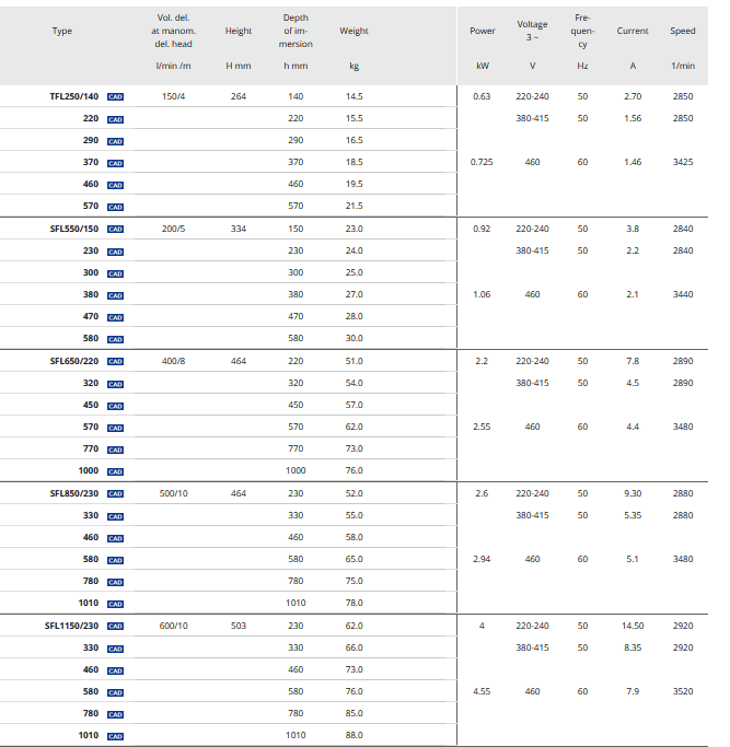 K.H. Brinkmann - Model TFL250...SFL1150 -Quick Suctioning Immersion Pump