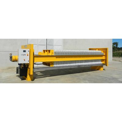 The QuickDry filter press is a semi-automatic machine. The electric control automatically manages all of the filtration steps, but the discharge of the pressed sludge is done manually by the operator. The structure is built in electro welded carbon steel and it includes all the devices necessary to control the filtration process. The feeding of the slurry in a central position, while the discharge of the filtered liquid may be effected both by an opened channel or by a closed manifold.