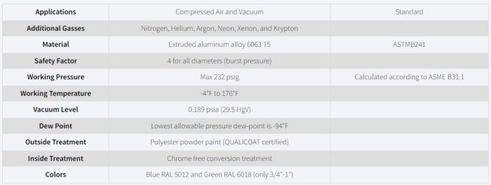 AIRnet is offered in a wide variety of sizes to accommodate virtually all installation needs and pressure requirements. AIRnet is not simply a compressed air piping system it also holds industry ratings to be ideally utilized in compressed air, vacuum, and inert gases applications. AIRnet is a viable solution to accommodate a wide variety system requirements.
