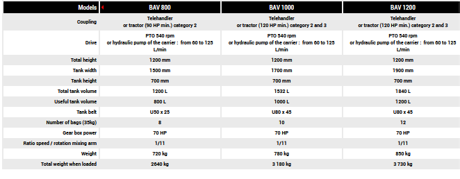 The concrete mixing bowl RABAUD is adaptable on telehandler or tractor. This machine has a strengthened tank with 4 adjustable blades.